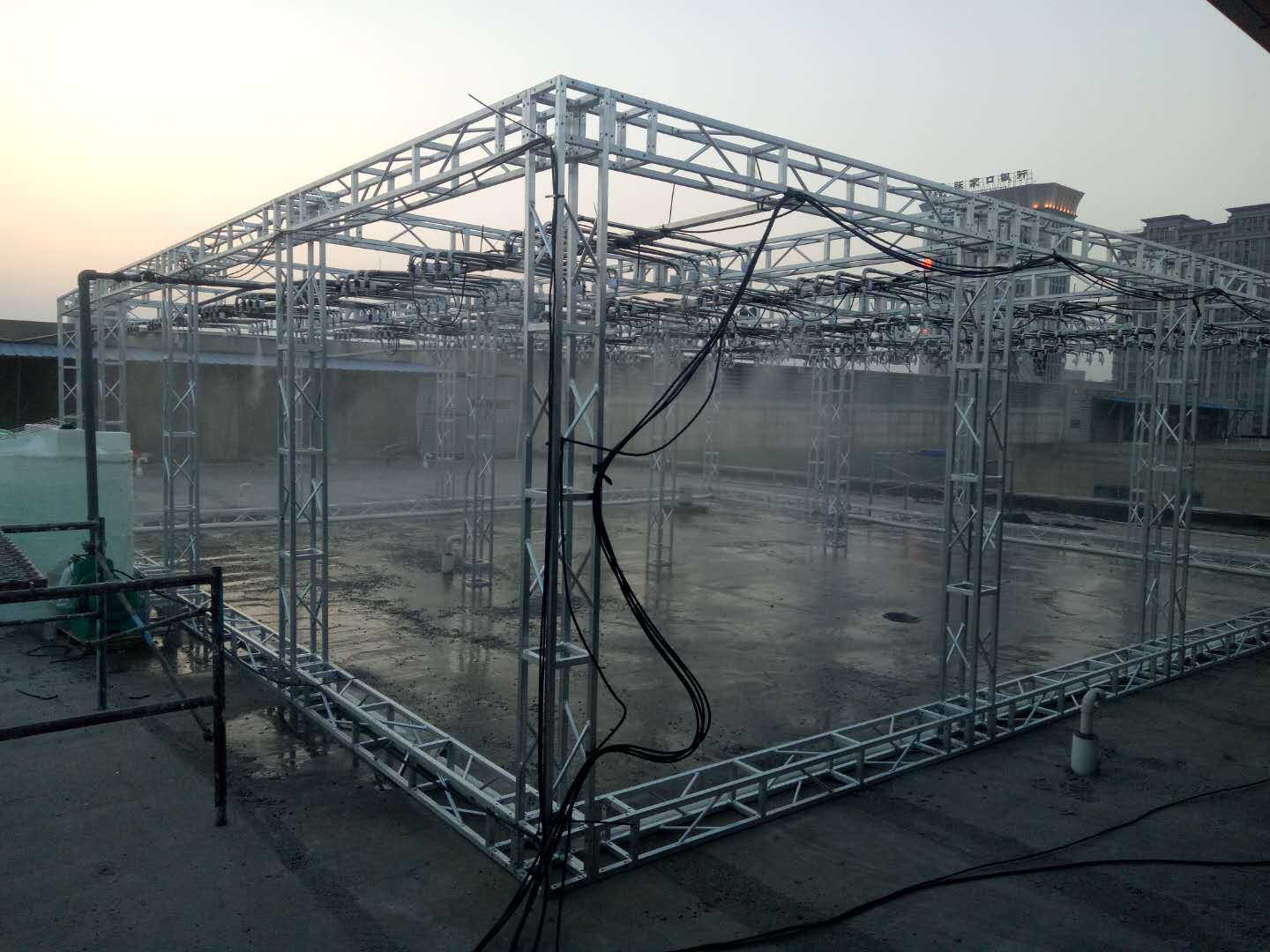 2、降雨模擬系統(tǒng)方案:是指在實(shí)驗(yàn)區(qū)建成降雨區(qū),降雨區(qū)為了有效的保證達(dá)了下墊面的實(shí)驗(yàn)得以完成,有效降雨面為10×10米,總100平米,降雨高度為6米。整個(gè)降雨可以達(dá)到模擬人工降雨的效果,